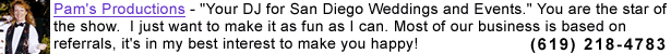 counties – while state highway 54 opens up to the inland valleys. The city of Imperial Beach operates a number of green parks, while the state maintains the nearby beaches. As you might guess, fishing, surfing and simply enjoying the water are favorite Imperial Beach leisure activities. A gorgeous and fun place for your wedding guests!   Imperial Beach Weddings Make sure you have the best Imperial Beach Wedding Vendors working for you! Fill out the form below to get started. San Diego Wedding Professionals - Add Your Business! |  |